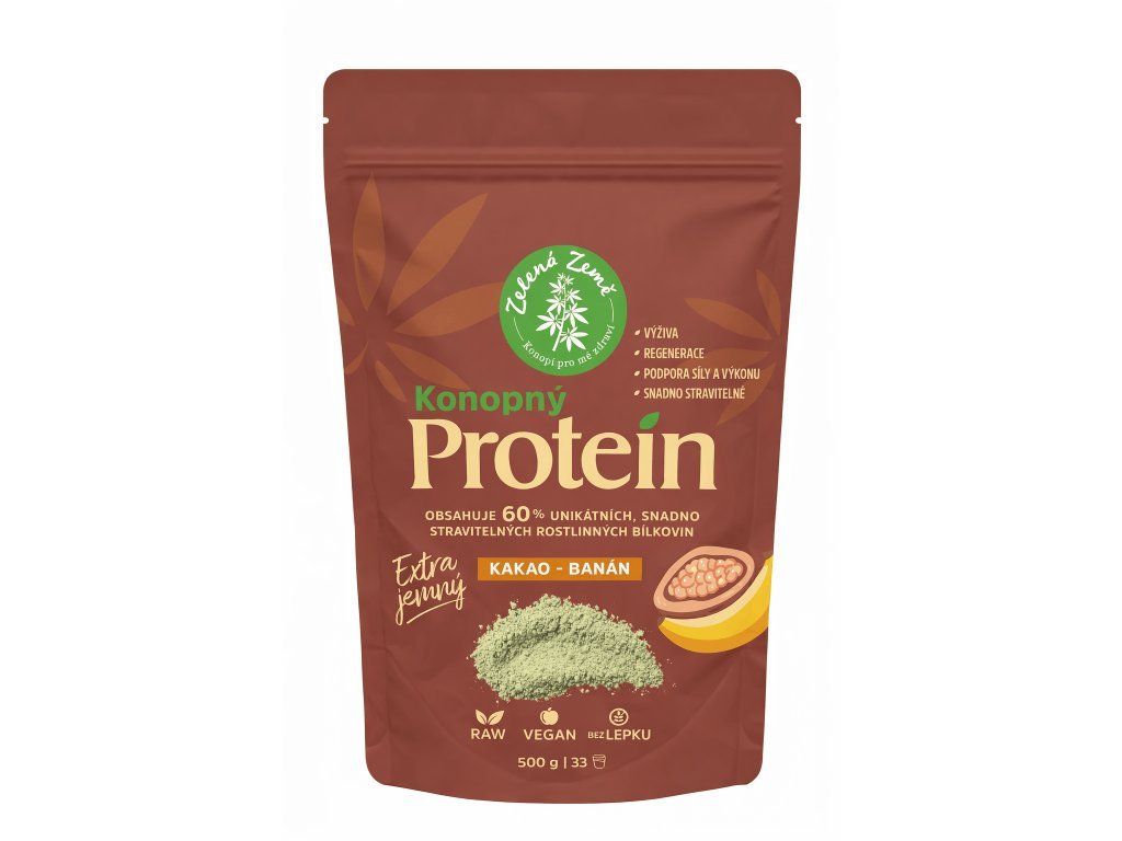 Konopný proteín kakao–banán je superpotravina s obsahom 60 % vysoko kvalitných rastlinných bielkovín. Nové zloženie sa ešte lepšie rozpúšťa vo vode.